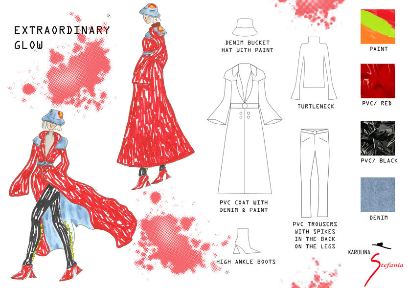 EXTRAORDINARY GLOW contains six fashion 'looks' in a mix of modern and retro styles. I've mixed denim and PVC to create an eclectic collection. Stand out in the crowd! Touch my clothes and you will discover that the pattern is made of REAL paint! Thanks to my collection EVERY woman can feel SPECIAL and ONE IN A MILLION!
